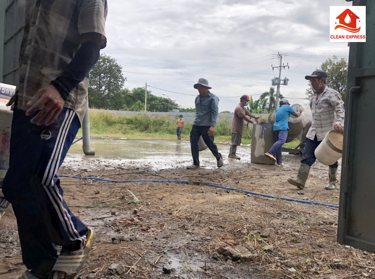 Tập kết máy móc, vật tư: cát, đá, xi măng (nếu chủ đầu tư yêu cầu bao vật tư) và nhân công tại công trình.